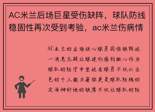 Intheever-evolvingworldoffootball,transfersandrumorsdominatethesportsheadlines,andfanseagerlyawaitthenextbigmovethatcouldreshapetheirteam'sfate.ForACMilan,oneofthemoststoriedclubsinItalianfootball,thequestforstrengtheningtheirsquadisalwaysintense.WiththeclubaimingtochallengefortophonorsonboththedomesticandEuropeanfronts,thesearchforapotentstrikerhasbecomeapriority.recentreportshavesurfaced,suggestingthatJuventus’starstrikercouldbethenexttargetfortheRossoneri.